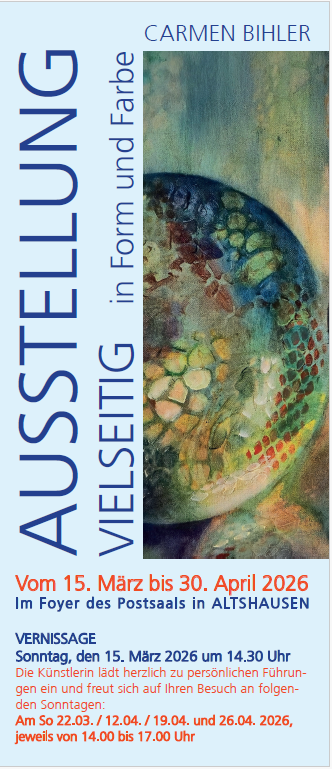 Die Gemeinde Altshausen und die Künstlerin Carmen Bihler laden Sie herzlich zur Eröffnung der diesjährigen Ausstellung im öffentlichen Raum ein: